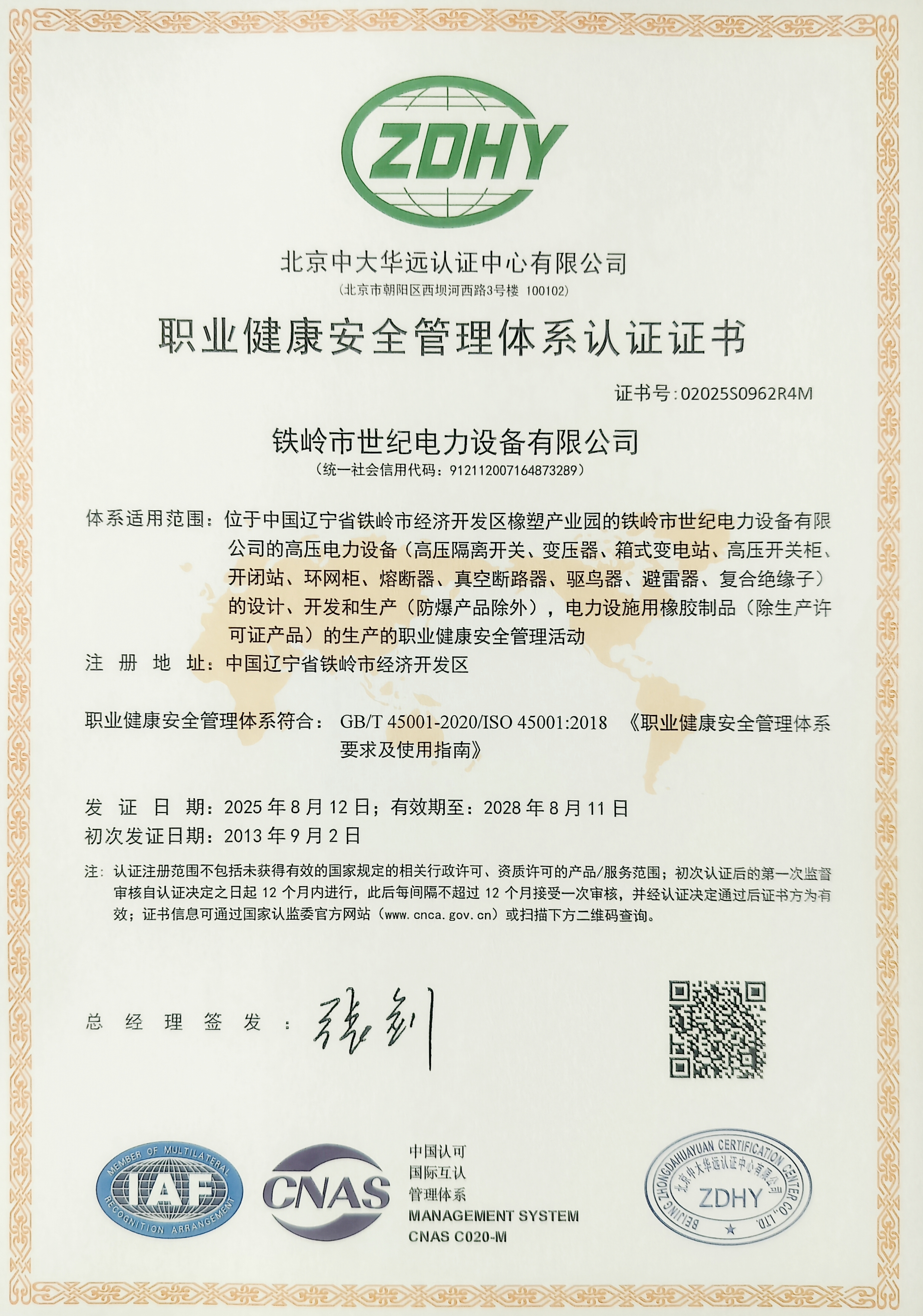 鐵嶺市世紀(jì)電力設(shè)備有限公司是集科研開發(fā)、生產(chǎn)制造、用戶服務(wù)于一體的國(guó)家高新技術(shù)企業(yè),始建于1999年,位于鐵嶺經(jīng)濟(jì)開發(fā)區(qū),占地面積5萬(wàn)余平方米,建筑面積2萬(wàn)余平方米。主要從事國(guó)家電網(wǎng)配套戶外高低壓隔離開關(guān)、電力電纜、變壓器成套裝置、高低壓開關(guān)柜、箱式變電站、絕緣子等產(chǎn)品的研發(fā)、生產(chǎn)和銷售。公司現(xiàn)有國(guó)家發(fā)明專利6項(xiàng)、實(shí)用新型專利9項(xiàng),公司通過(guò)了ISO9001國(guó)際質(zhì)量管理體系認(rèn)證、ISO14001環(huán)境管理體系認(rèn)證和ISO 45001職業(yè)健康安全體系認(rèn)證。